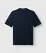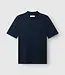Het shirt is gemaakt van hoogwaardig katoen, wat zorgt voor een zachte, ademende stof die prettig aanvoelt op de huid. Dankzij de lichte knitstructuur krijgt het T-shirt een subtiele, luxe uitstraling die net iets chiquer oogt dan een standaard basic T-shirt. De diepe navykleur geeft het geheel een tijdloze en elegante look, die eenvoudig te combineren is met zowel lichte als donkere tinten.