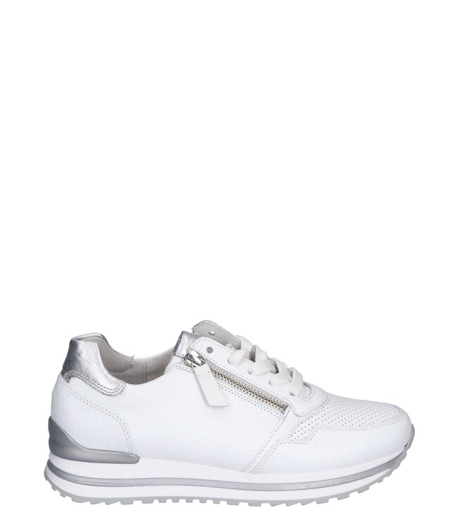 Deze Gabor sneaker in wit leer met subtiele zilveren accenten is een perfecte keuze voor wie houdt v..