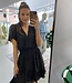 Dit jurkje is perfect voor elke gelegenheid, of het nu een feestje, een avondje uit of een speciale gelegenheid is. Het zwarte ontwerp zorgt voor een tijdloze en elegante uitstraling, terwijl het zilveren glitterdraadje een subtiel vleugje glans toevoegt.
