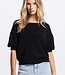De Noor trui in zwart is een normale fit model met korte mouwen en ronde halslijn. Gemaakt van linne..