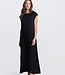 De Otis jurk in zwart is een lange A-lijn jurk van glanskwaliteit stof met kapmouwen en een ronde ha..