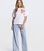 Luchtig en vrouwelijk shirt met korte mouwen in een zachte Flower Blush tint. Gemaakt van comfortabel katoen met een losvallende pasvorm en verfijnde bloemen details, perfect voor een frisse en stijlvolle zomerse look. Lees meer..