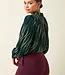 De blouse heeft een nette knoopsluiting aan de voorzijde, wat zorgt voor een verzorgde look die eenvoudig aan- of uit te trekken is. Het rijke pine green kleurenschema geeft een natuurlijke, verfijnde kleur die gemakkelijk te stylen is met zowel lichte als donkere basics. Of je nu kiest voor een casual outfit met jeans of een chiquere combinatie met een rok of pantalon, deze blouse past in diverse garderobe-stijlen.