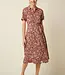 Het model heeft een klassieke blousekraag en een volledige knoopsluiting aan de voorzijde, wat de jurk een tijdloze en verzorgde uitstraling geeft. De korte mouwen en de licht uitlopende midi-lengte zorgen voor een luchtig en vrouwelijk silhouet. Dankzij de bijpassende strikceintuur in de taille creëer je eenvoudig een mooi aansluitende pasvorm die het figuur flatteert.