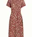De King Louie Olive Dress Paradis in Chili Red is een vrouwelijke en stijlvolle midi jurk met een uitgesproken, vintage geïnspireerde uitstraling. De warme chili red kleur in combinatie met de speelse Paradis print geeft de jurk een opvallende en elegante look, perfect voor het voorjaar en de zomer.