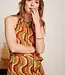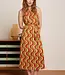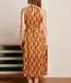 Deze opvallende midi-jurk van King Louie is een echte blikvanger. De Virna Dress in het ‘Jiggy’-dessin is uitgevoerd in een warme roodtint met subtiele glans – perfect voor een feestelijke look met een vintage knipoog.