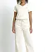 De zachte off white kleur vormt een frisse en tijdloze basis, terwijl de gouden accenten zorgen voor een elegante, vrouwelijke touch. Deze combinatie maakt het T-shirt veelzijdig en makkelijk te stylen – ideaal voor zowel een casual als een meer geklede look.